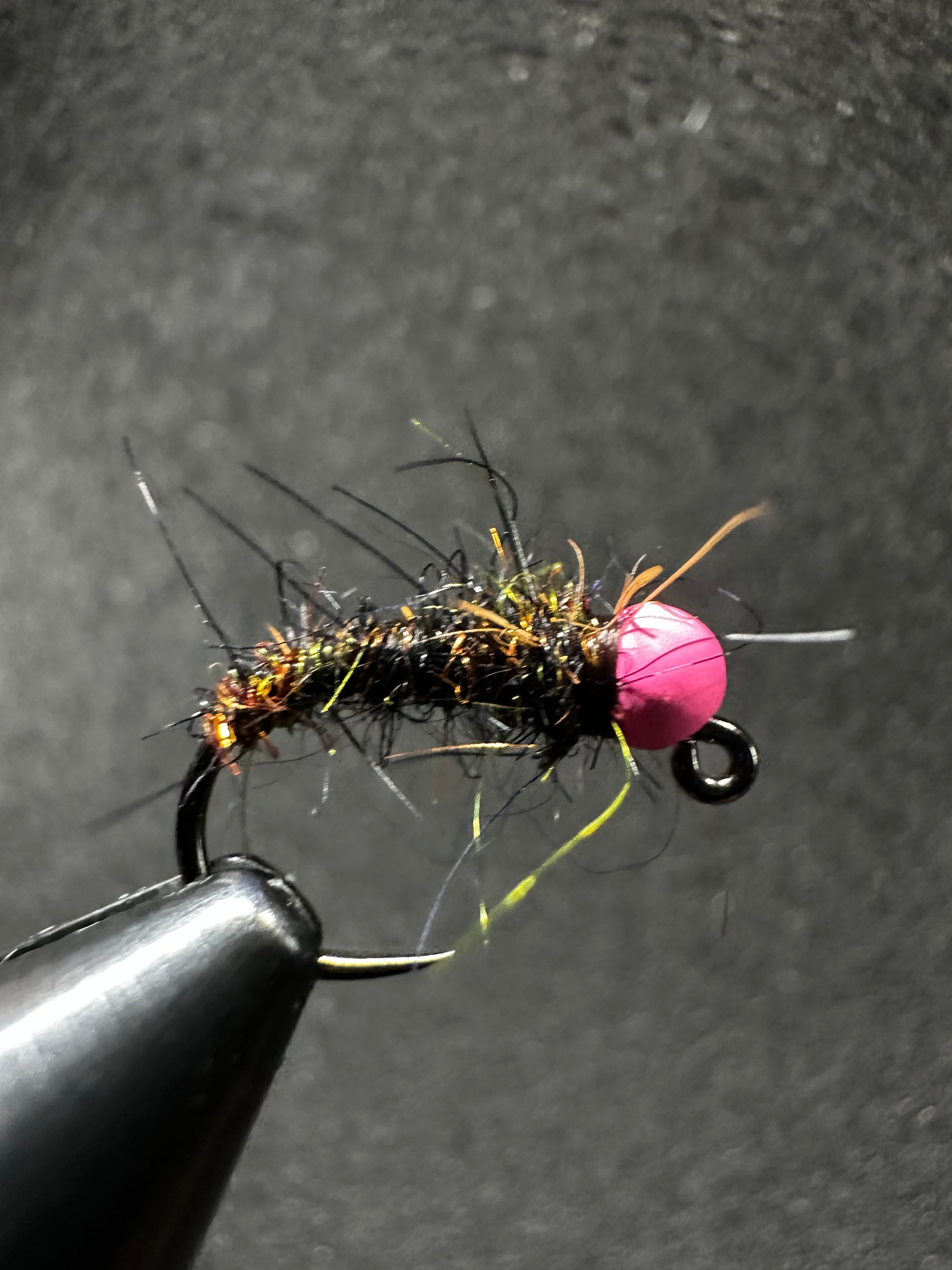 These Sunday Specials are tied with oversized beads to help them hit the bottom of the river in higher water conditions. This is one of those "all year long" patterns! We always have a row of these in our guide boxes and on each boat!