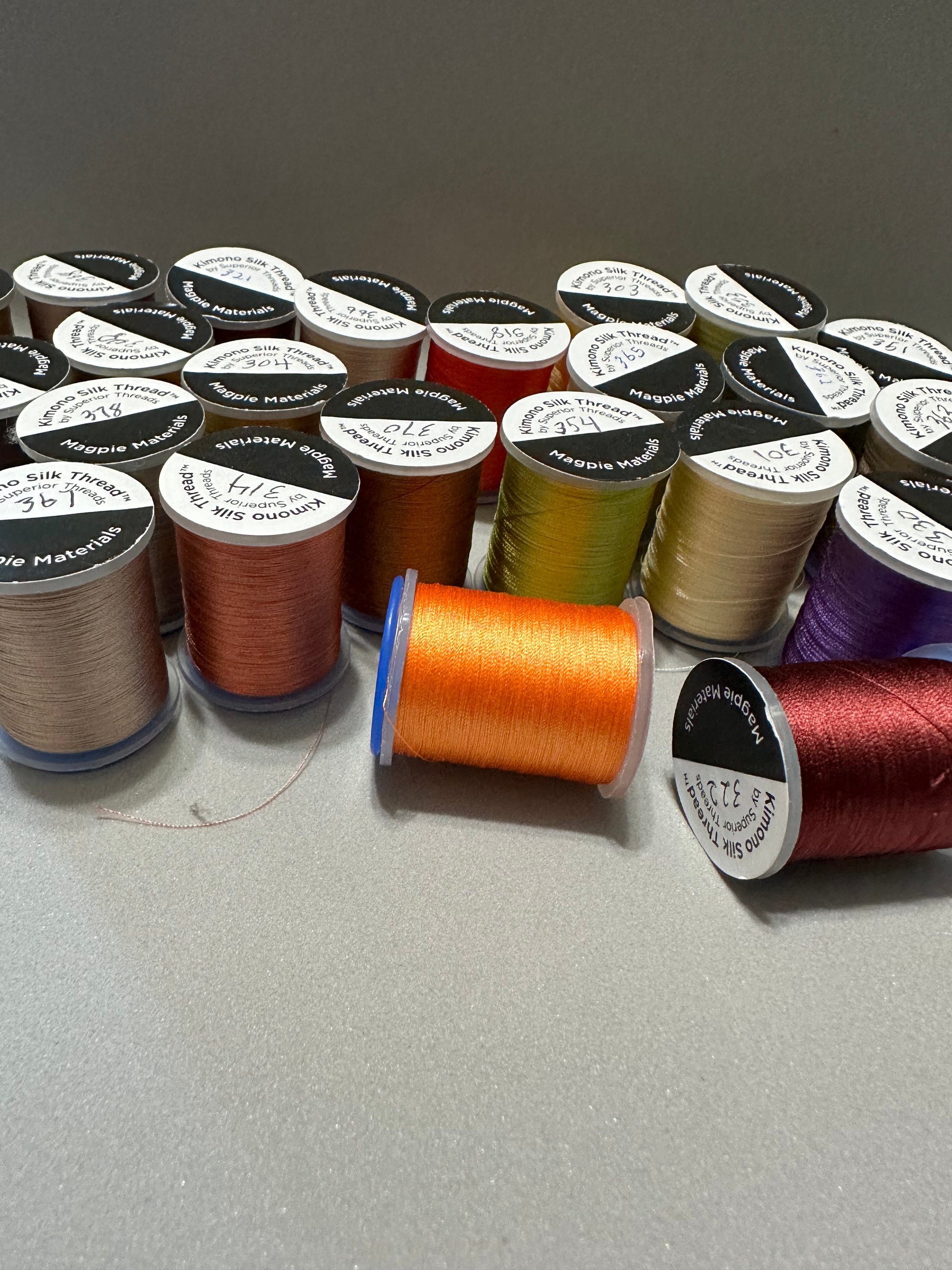 This is the beginning of a new era in the use of silk in our fishy craft. In keeping with the Magpie ethic of high-quality materials for the discerning fly tyer, we have worked out a deal with Superior Threads to re-spool their fine KIMONO SILK THREAD on fly tying sized spools. That’s right. While Kimono is nothing new to the fly tyer, never before has it been offered on appropriately-sized spools. You’ll no longer be limited to purchasing a special, larger bobbin or re-spooling on your own.