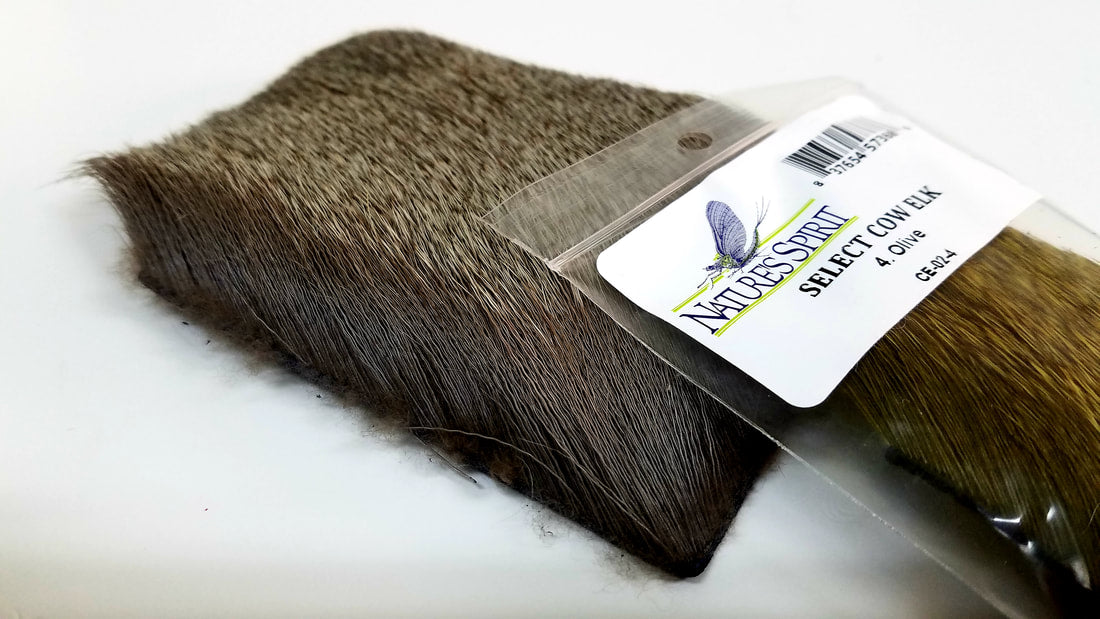 We travel to both Montana and Idaho selecting hides of the finest quality for fly tying purposes.  our cow elk hair is a premium product and is perhaps the best all around fly tying hair.  This flank hair is grade for straightness, short to medium tips and texture that allows for compression yet maintains shape.