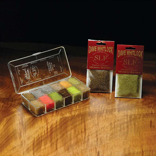 This range of Synthetic Living Fiber (SLF) dubbing was designed by Dave Whitlock to match mixtures and colors for his world famous patterns. The series now has a touch of Wapsi's Prism Dubbing added.